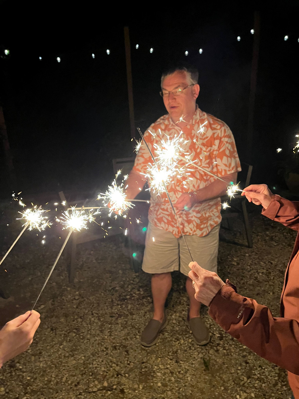 Diwali celebrates light over dark, good over evil, and knowledge over ignorance. So, following our monthly potluck which coincided with the fourth night of Diwali celebrations, we went outside and lit sparklers to drive the dark night away.